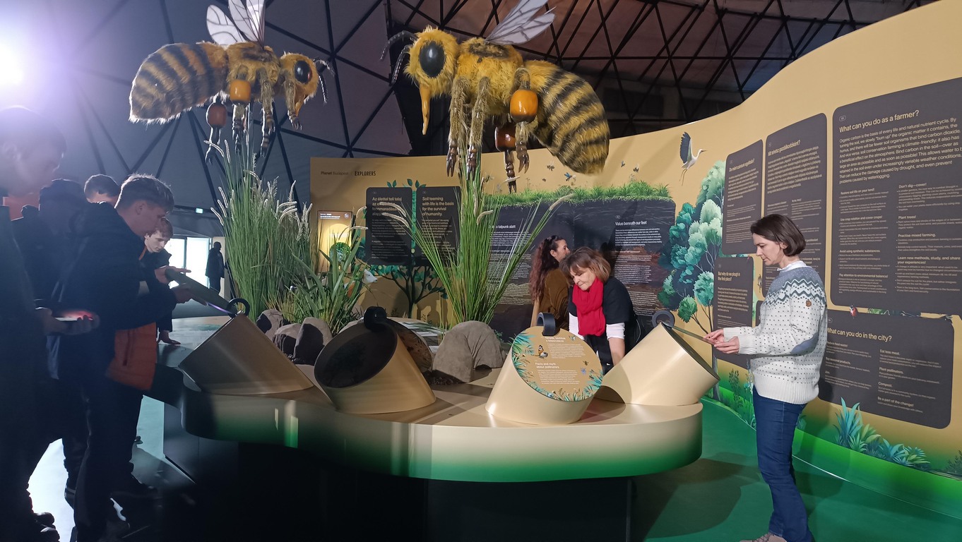 A diákok nem csak nézelődtek, hanem valódi részeseivé váltak a folyamatoknak. Érintőképernyős játékok és látványos installációk segítségével érthették meg, miért is fontos a vízkészleteink védelme, a komposztálás, a beporzó rovarok jelentősége vagy éppen a tudatos fogyasztás és a környezetvédelem.