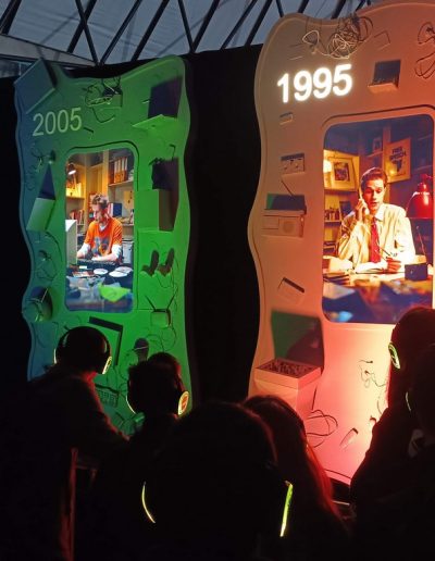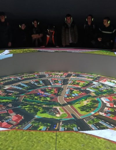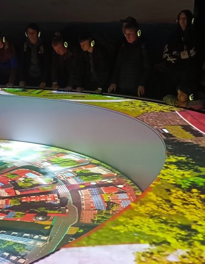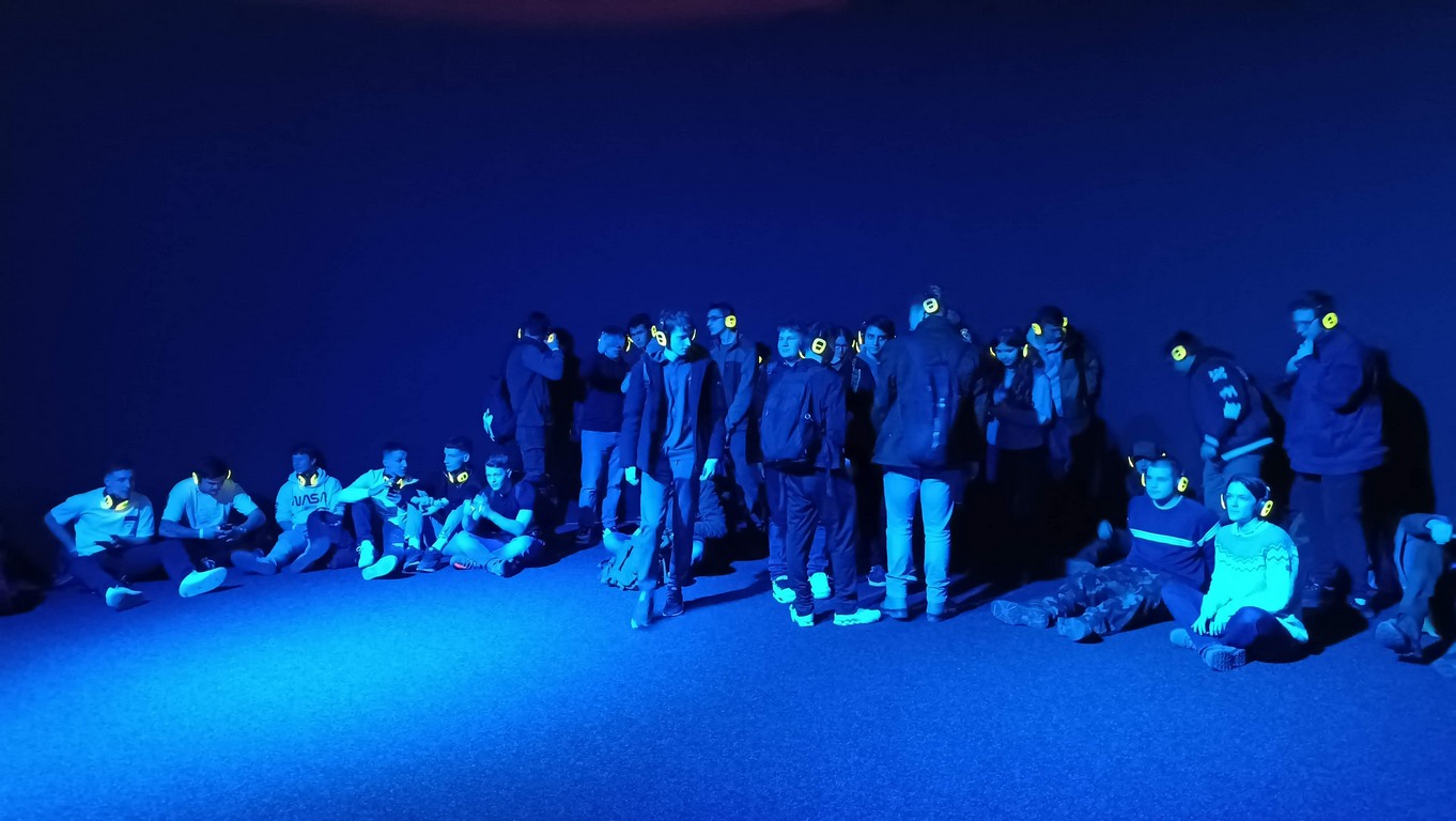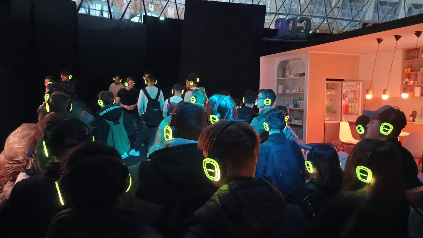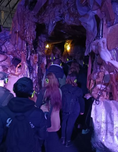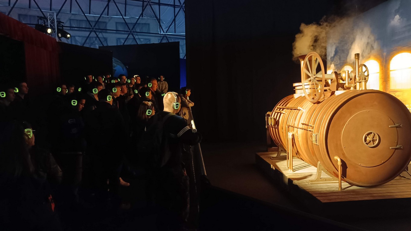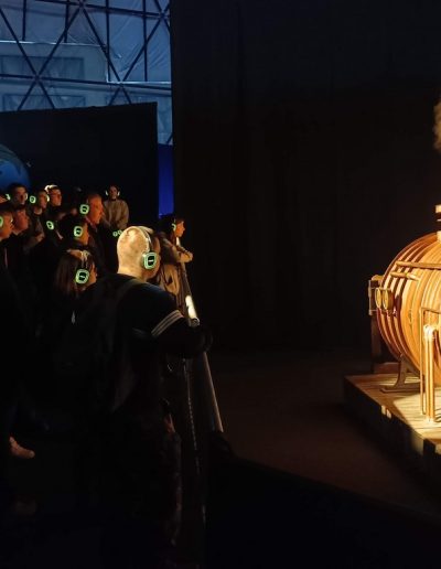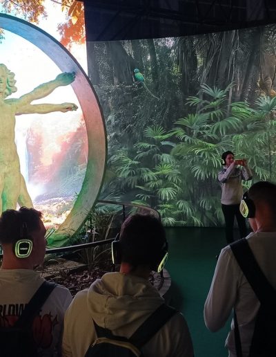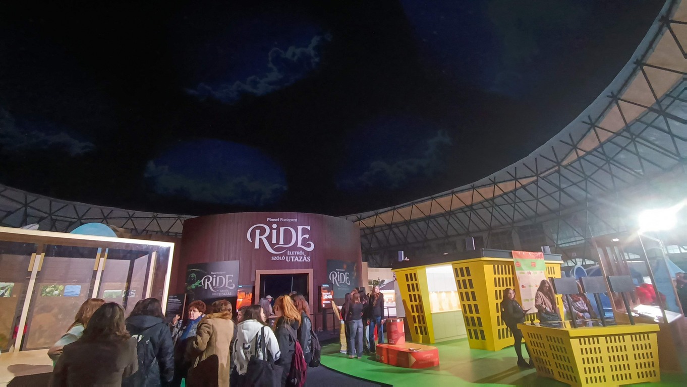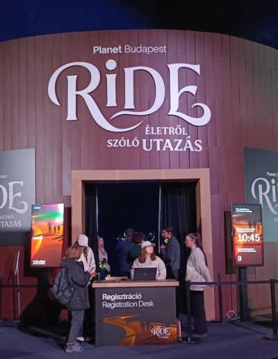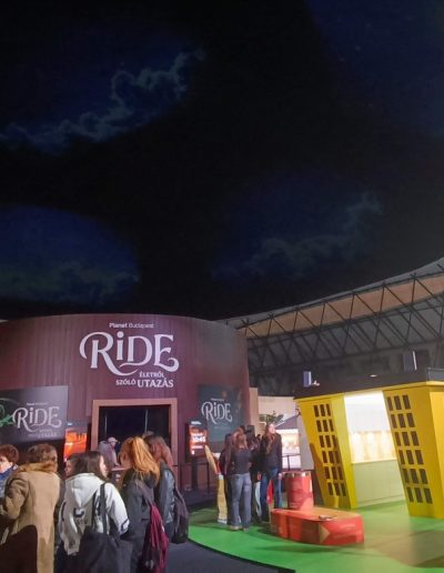 A kiállítás után a Ride-ra, azaz egy időutazó túrára volt időpontja a csapatunknak. A Ride egy, a múlt, a jelen és a jövő állomásain keresztülívelő séta. Filmes díszletek között elevenedett meg az utazók körül a Föld és az ember kapcsolatának története. A látványos elemek segítségével az emberiség útját követhetjük végig, attól a pillanattól kezdve, amikor még harmóniában éltünk a természettel. Megdöbbenve szembesültünk azzal, hogy milyen következményei vannak a szokásainknak és milyen lehetőségeink vannak, hogy változtassunk ezen.